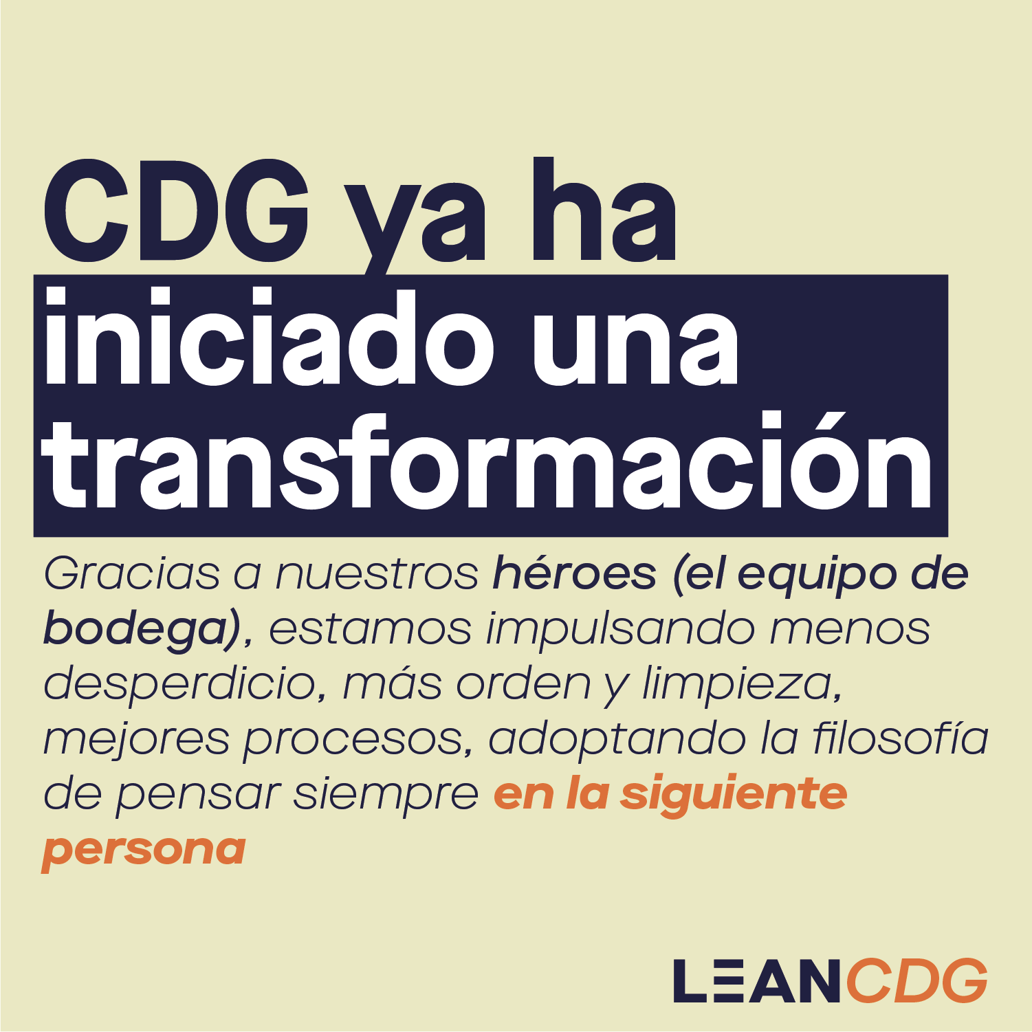 Lo que vamos documentado: A continuación, encontrarás los videos del proceso de transformación LEAN CDG en desarrollo.